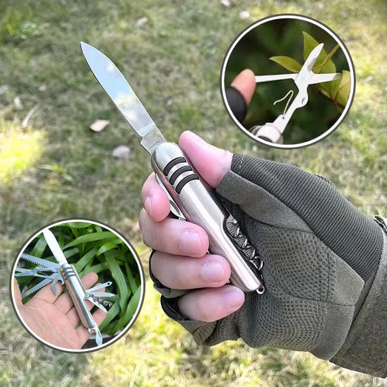 Les COUTEAUS MULTI-USAGES : 5 fonctions en un seul outil Un allié quotidien qui vous facilitera la vie Imaginez-vous face à ces petites tâches quotidiennes qui nécessitent souvent plusieurs outils différents. Nos COUTEAUS MULTI-USAGES réunissent 5 fonctions essentielles Leur lame en acier inoxydable garantit durabilité et efficacité pour tout usages. Que ce soit pour ouvrir un colis, couper une ficelle ou préparer un en-cas rapide.